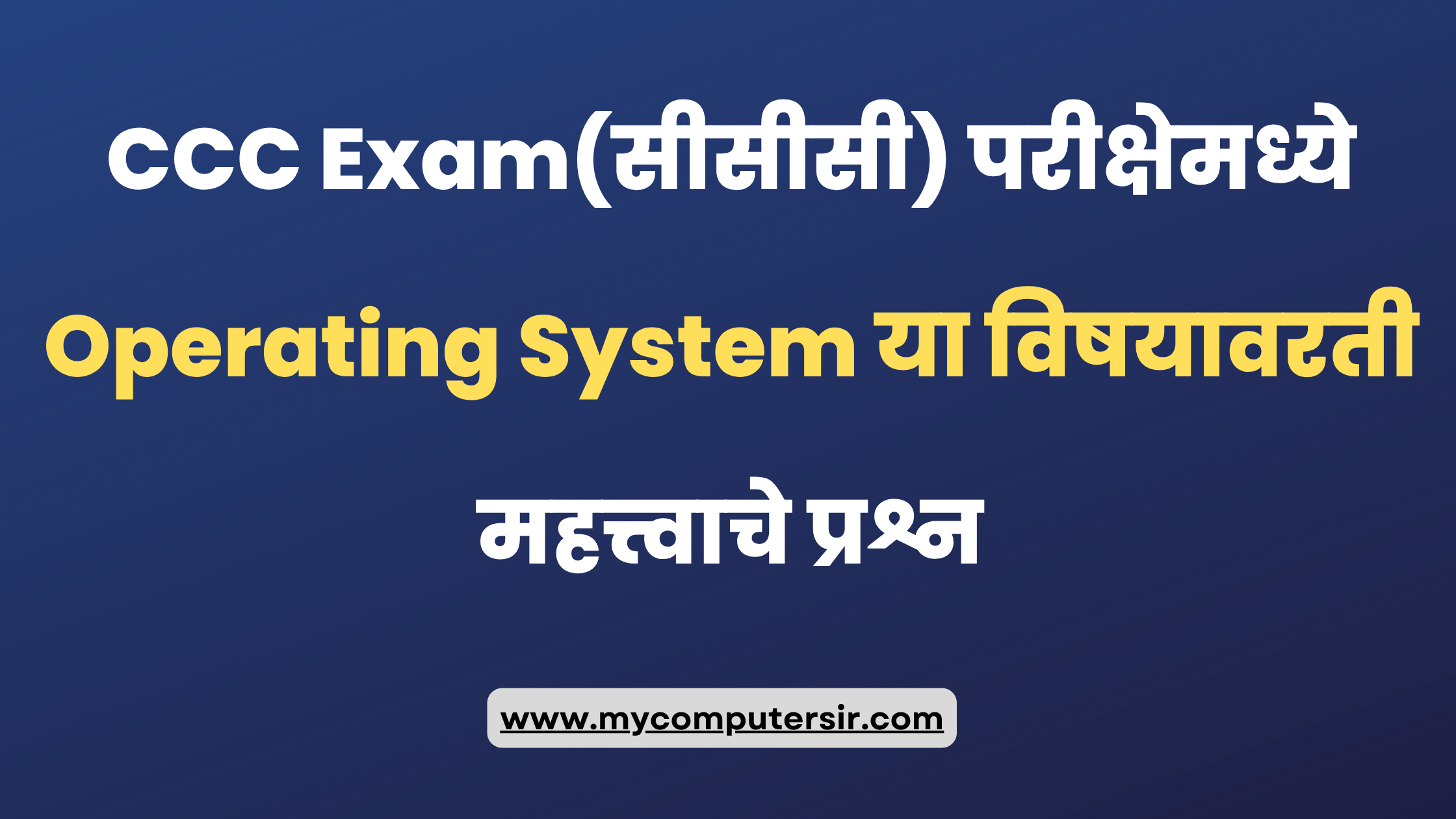 CCC परीक्षा मधील सर्वात महत्वाचे प्रश्न Part 5 Computer Questions and Answers CCC Exam(सीसीसी) परीक्षेमध्ये वारंवार विचारले जाणारे काही महत्त्वाचे प्रश्न आपण आज पाहणार आहोत. 1. Who made the first Aadhaar based Micro ATM? पहिले आधार आधारित मायक्रो एटीएम कोणी बनवले? SBI ICICI Boi DCB 2 .Who evaluates/scans … Read more